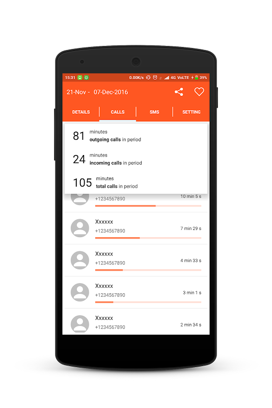 ☑️ View list of contacts ordered by number of call minutes and messages.