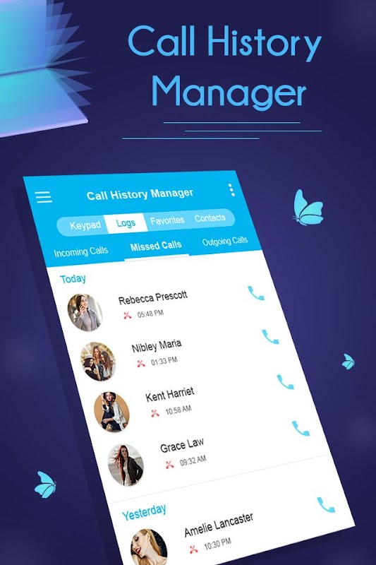 - Filter Missed Calls, Dialed Calls and Received Calls with just one click.