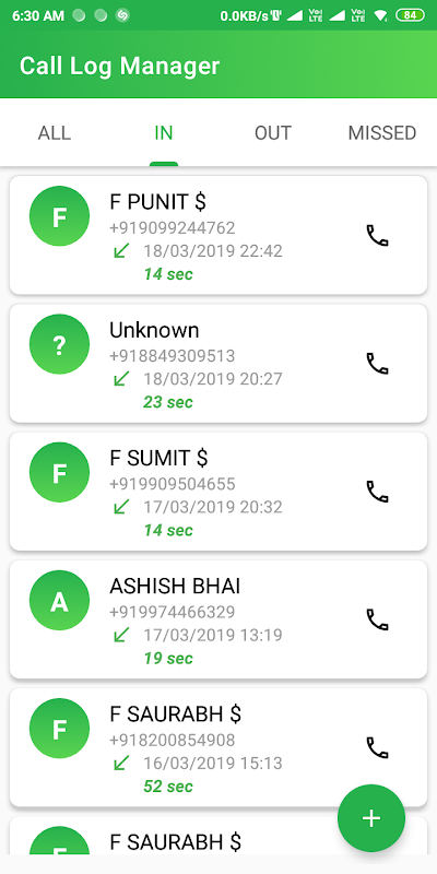 Keep your all call logs history in one place data including incoming, outgoing and missed calls.