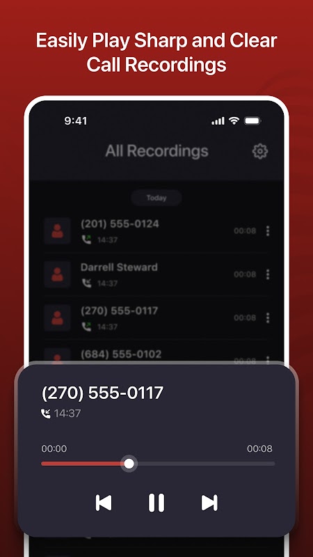 เริ่มใช้แอปเครื่องบันทึกการโทรอัตโนมัติวันนี้และควบคุมการสนทนาทางโทรศัพท์ของคุณด้วยคุณสมบัติการบันทึกการโทรอัตโนมัติอัจฉริยะ การบันทึกทั้งหมดของคุณจะได้รับการจัดเก็บอย่างปลอดภัยภายในแอปและเข้าถึงได้ง่ายทุกเมื่อที่คุณต้องการ