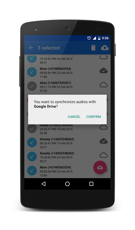 Auto sync recorded files with Google Drive. All, one-by-one sync system and custom selected file sync system