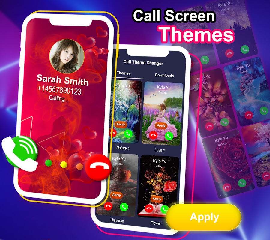 ด้วยแอปหน้าจอผู้โทร คุณสามารถเปลี่ยนวิธีการรับสายเรียกเข้าได้ ปรับแต่งทุกองค์ประกอบของรูปลักษณ์อุปกรณ์ของคุณ ตั้งแต่หน้าจอการโทรไปจนถึงวอลเปเปอร์ 4K, เครื่องมือสร้างริงโทน, เครื่องมือสร้างแฮงเอาท์วิดีโอปลอม
