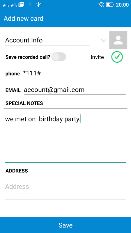 And much more, After call ends,sometimes you think:" i wish i recorded this call.." well now you can. After call ends you simply save the recorded call .If you think this last call wasn't worth recording just ignor the "save recorded call?" button and last call record not saved.simple as that..All calls(incoming/outgoing)recorded automatically to temporary file, if you wish to save the recorded call you click once. don't want to save it will deleted automatically from temporary file...After every call you can edit the caller information so next time popup note is up to date..app also has "history" for managing better your contacts and call logs..