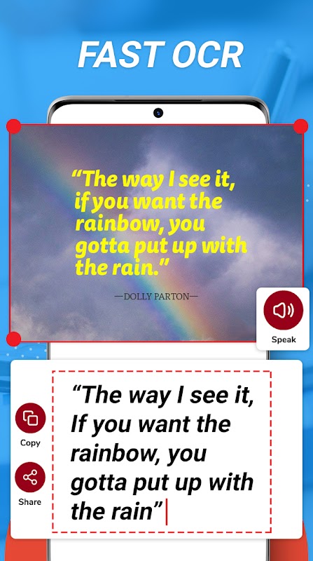 แยกข้อความจากภาพถ่ายหรือรูปภาพใด ๆ แอพสแกนเนอร์ OCR สามารถแปลงรูปภาพเป็นข้อความ คุณสามารถแก้ไข ค้นหา และแบ่งปันข้อความกับผู้อื่นได้อย่างง่ายดาย
