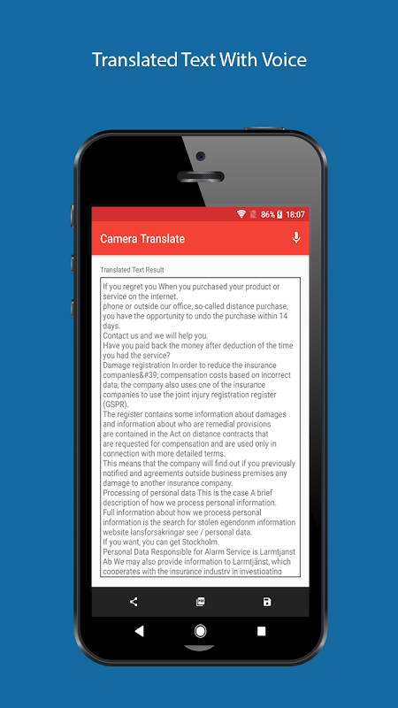 It is as simple as focusing your device camera on image that contains text and all the remaining jobs will be taken care of by Camera Translator All Language app.