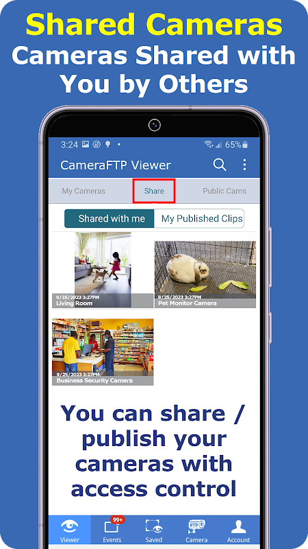 CameraFTP เสนอพื้นที่เก็บข้อมูลบนคลาวด์ไม่จำกัด ตราบใดที่กล้องของคุณได้รับการกำหนดค่าให้อัปโหลดตามแผนบริการของคุณ คุณสามารถตรวจสอบและเล่นภาพที่บันทึกไว้จากระยะไกลได้ คุณยังสามารถแบ่งปันหรือเผยแพร่กล้องของคุณเพื่อให้ผู้อื่นดูได้