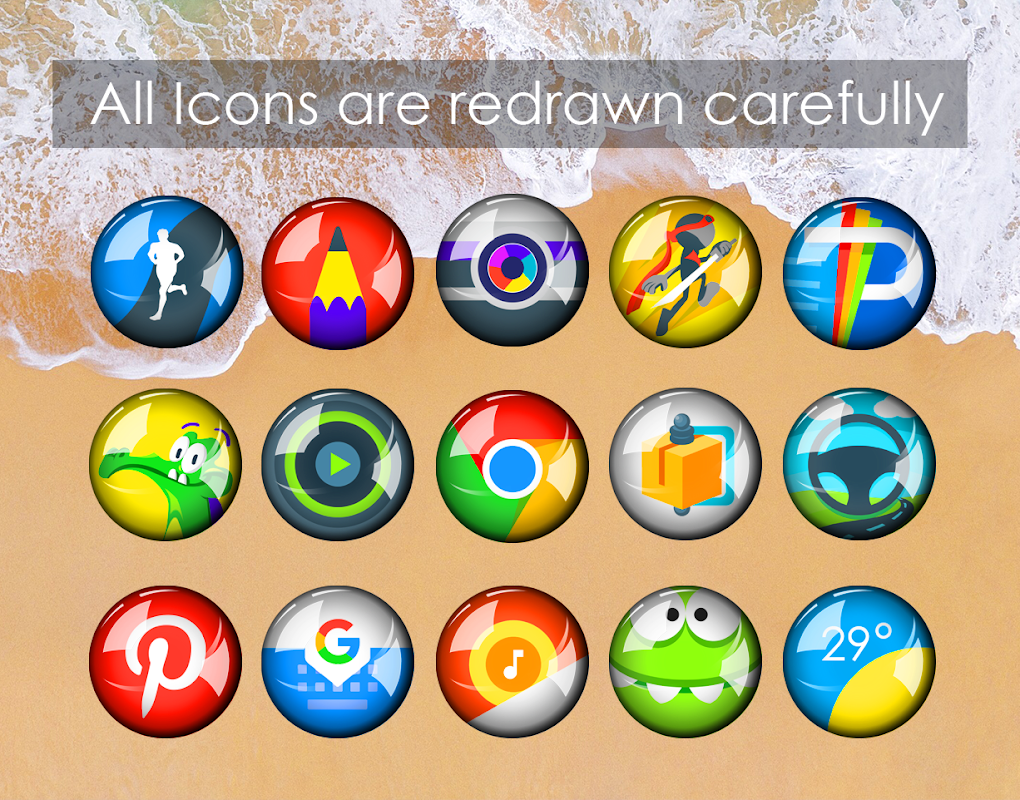 - มีไอคอนมากกว่า 1,550 + และวอลเปเปอร์คุณภาพสูงมากมาย