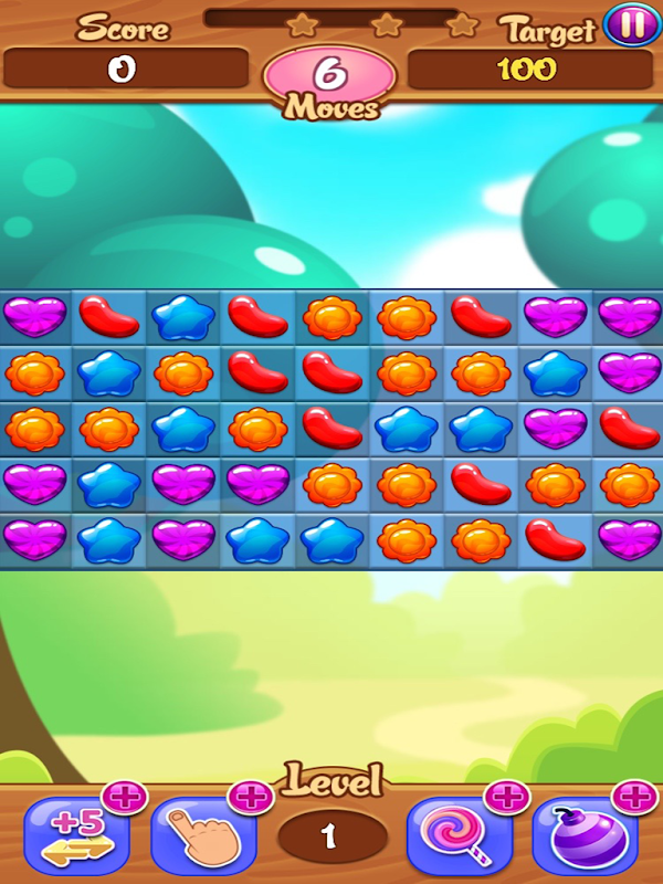 this match three game. Move the candies the way you get three or more of the same type in a row.