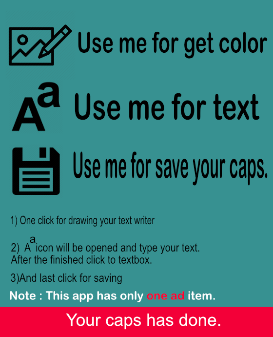 You want to make caps. You try to get quick and straightforward caps, but all mobile app has too many ads. Don't worry about this anymore. Caps maker will you make for you. It has simple using and not need any internet connection.