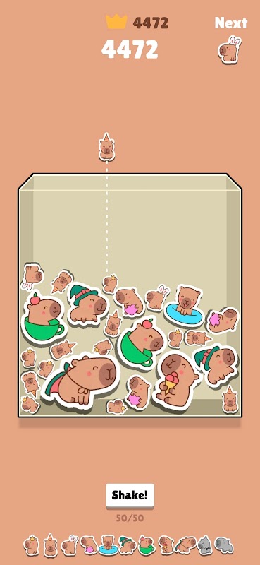 Capybara Go คือเกมคลิกเกอร์และวิวัฒนาการคาปิบาร่าแบบไม่ต้องทำอะไรมาก ที่การแตะแต่ละครั้งจะทำให้คาปิบาร่าของคุณมีชีวิตชีวา คุณสามารถแต่งตัวให้คาปิบาร่าด้วยชุดคาปิบาร่าสุดฮา สะสมสกินพิเศษ และเฝ้าดูพวกมันวิวัฒนาการเป็นสัตว์ในตำนาน ตั้งแต่คาปิบาร่าตัวน้อยไปจนถึงราชาแห่งเวทมนตร์!