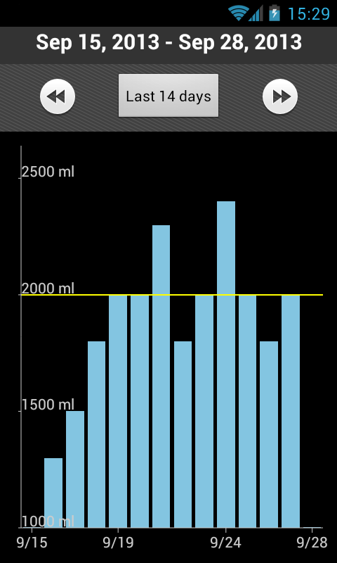 Let us help you to reach your goal by drinking water in a smart and clever way: with each sip of water you make the droid (and hence yourself) to look happier. This type of motivation makes it pretty easy to change your water drinking habits.