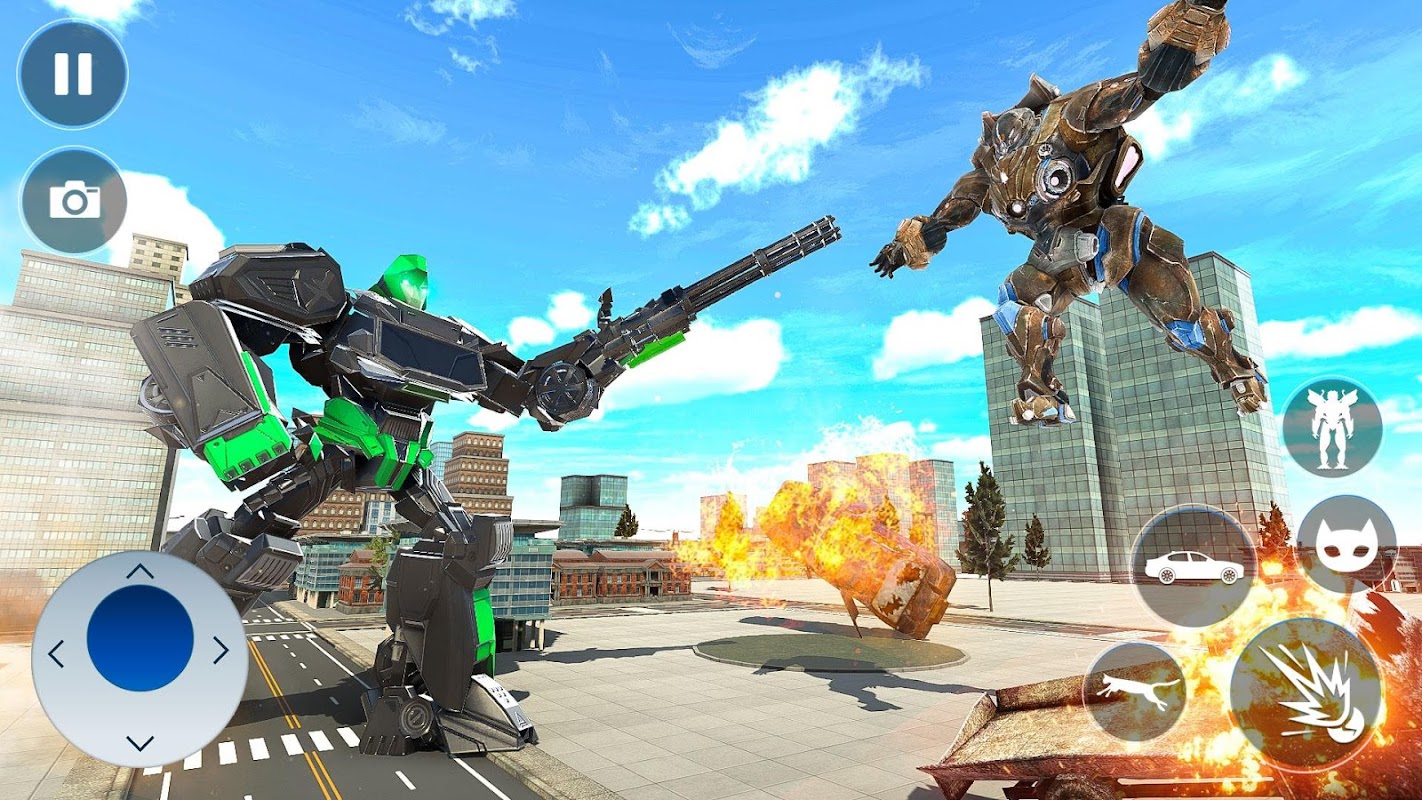 Transforming Car Robot 3d fighting game offer you to drive the city cat robots speed car robot shooting games . You can transform your sports car or fighting cat robot hero who is always ready to jump into mech robot battle transforming game. Convert monster cat robot transformation car to robot car driver for robots grand war. Enjoy the Wild Cat Robot Car Transformation Robot Hero game to drive the futuristic supercar shooting robots and avoid survive into mega robotic cat transformation and reach the battle robot spot as early as you can. Prove that you are grand superhero cat robot city car fighter of the futuristic grand city war game. Real futuristic robot flying car transformation games will give you the US cat warrior robot simulator fight experience. Perform wild kitten robot fighting games & transform robot car simulator and robot flying car. This is a modern robot grand car war games where you will feel like in future transform car driving because of this new robot fighting games with new Combat Style. In this robot car games new and free robot car transform 3D battle games you will face dramatic robot car transformation games: cat robot fight 3d. Download futuristic robot car transform: Cat Robot Games to perform action robot shooting games to destroy enemy robots. Transform into cat robot and fight as a survival hero in this cat robot fight game: car robot transforming.