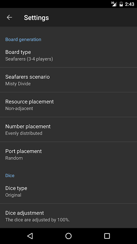 บอร์ดกำเนิดถูกออกแบบมาเพื่อสร้างเกมที่เป็นธรรมและมีส่วนร่วมของ Catan เล่นบนกระดานต้นฉบับหรือเลือกหนึ่งใน 30 สถานการณ์ของ Seafarers สำหรับผู้เล่น 3-4 คนหรือผู้เล่น 5-6 คนหรือหนึ่งใน 6 สถานการณ์สำหรับการขยายตัวของผู้ค้าและบาร์บาเรียน สถานการณ์ทั้งหมดมีอยู่ในรุ่นฟรี