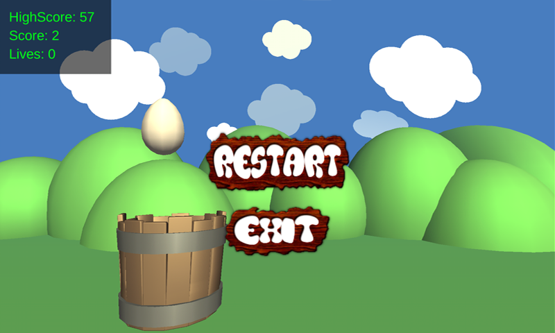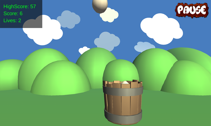 Catch the eggs fall to the ground with a bucket, you have only 3 drop eggs. Game ends if you drop more than 3 eggs. So you have to be careful. Catch all the eggs and make the highest score. You will love the realistic 3D physics engine. Have fun! Good Luck!