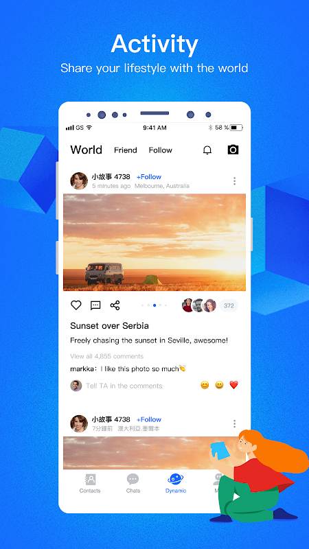 Wonderful dynamics: post pictures, texts, videos, record every bit of your life, share your lifestyle.