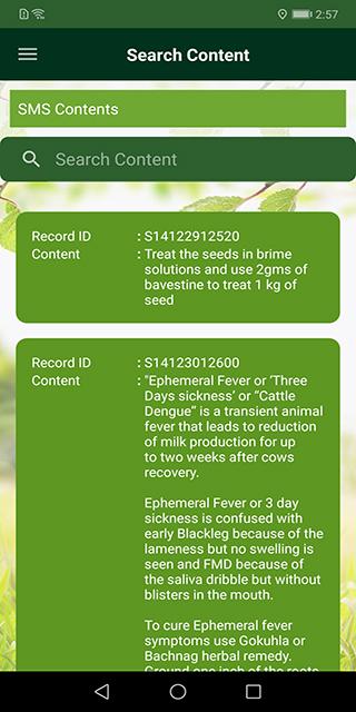 •แอพมือถือ: เปิดใช้งานการสร้างแท็บเล็ตจากโปรไฟล์เกษตรกรบันทึกความคิดเห็นของเกษตรกรและคำถามเกี่ยวกับ agrometereology และเข้าถึงผลิตภัณฑ์ความรู้ที่เกี่ยวข้องในโหมดออนไลน์และออฟไลน์