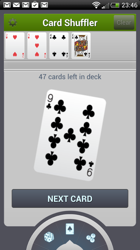 - บัตร Shuffler จะสับไพ่และวาดพวกเขาในเวลาหนึ่ง