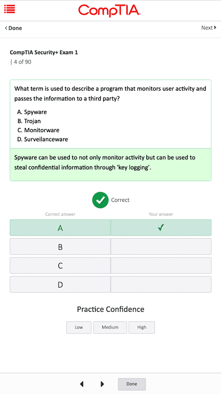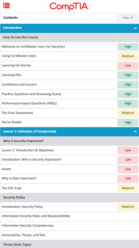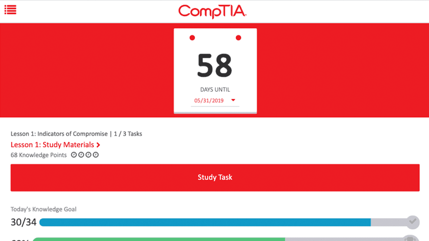 Interactive and flexible, CertMaster Learn is the ideal first step in your training journey. Instructional lessons are combined with videos, practice questions, and performance-based questions providing hours of content aligned with the CompTIA exam objectives. A Learning Plan helps you stay on track with your studies, while robust analytics bring awareness of your strengths and weaknesses.