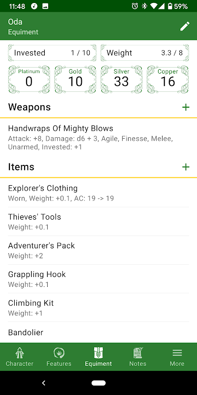 เครื่องคิดเลขในตัว - คุณสามารถสร้างคุณสมบัติที่มีสูตรที่ซับซ้อนพร้อมการอ้างอิงถึงคุณสมบัติอื่นๆ เช่น ความชำนาญของตัวละครกับทักษะหรือระดับของตัวละคร และแอปจะคำนวณให้คุณ