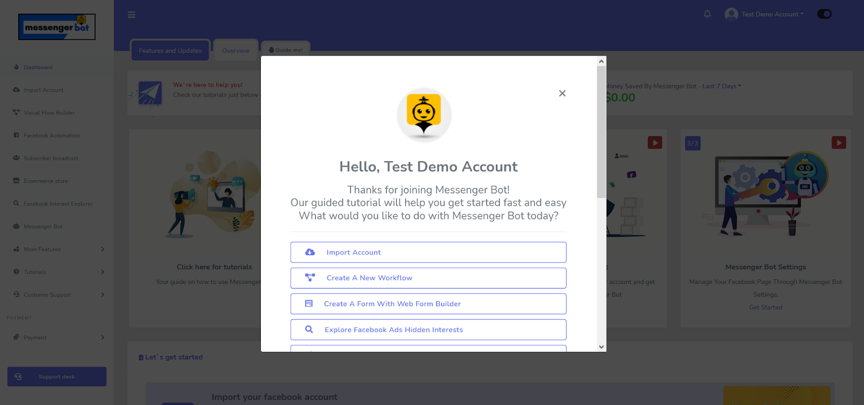 เราขอแนะนำให้เริ่มต้นด้วยแชทบอทฟรีเพื่อทดลองใช้และดูว่าพวกเขาทำงานในองค์กรของคุณหรือไม่ คุณยังสามารถใช้หน้า ChatBot Builder ซึ่งเราจะแสดงให้คุณเห็นว่าการตั้งค่าบน messengerbot.app นั้นง่ายเพียงใดเพื่อให้คุณสามารถเริ่มต้นได้ทันที!