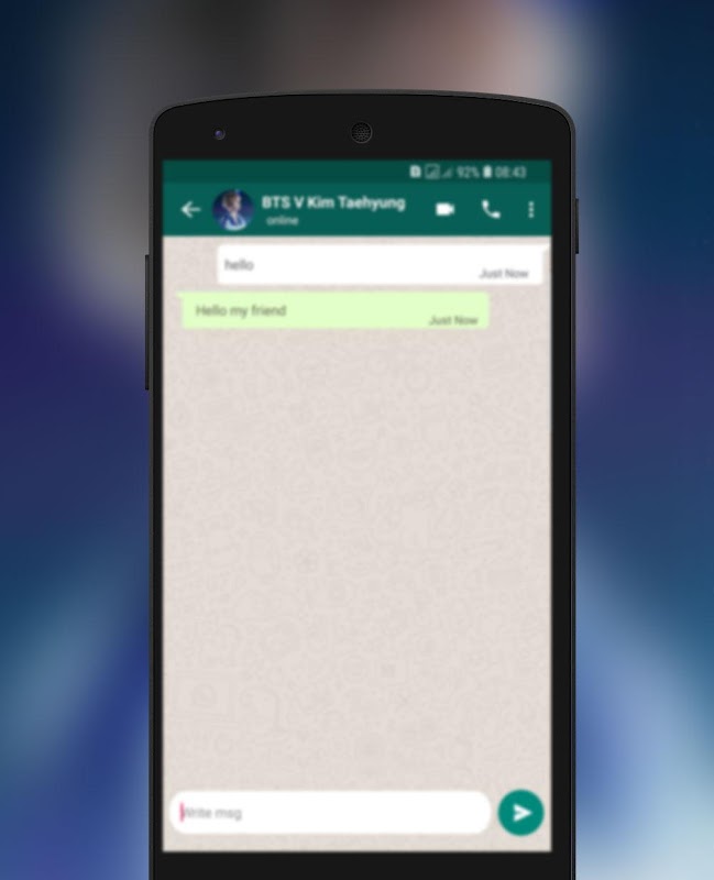 Live Chat With BTS V Kim Taehyung - Prank App for simulating chat conversations. Have fun with your friends making them believe you are actually chatting BTS V Kim Taehyung.