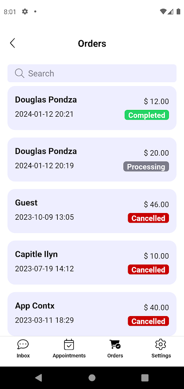 การจัดการการนัดหมายแบบง่าย: แอพของเรายังมีเครื่องมือการจัดการการนัดหมายที่ครอบคลุม ดูและจัดการการนัดหมายของคุณได้อย่างง่ายดาย ไม่ว่าจะเป็นการยืนยันการนัดหมายใหม่หรือการยกเลิกนัดหมายที่มีอยู่ ทำทุกอย่างได้ด้วยการแตะเพียงไม่กี่ครั้ง คุณสมบัตินี้ช่วยให้แน่ใจว่าคุณติดตามกำหนดการของคุณและไม่พลาดการประชุมหรือเซสชั่นสำคัญกับลูกค้า