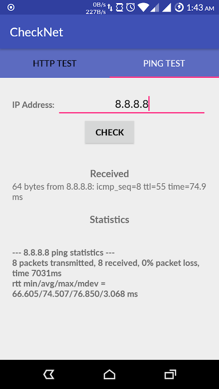 CheckNet is a minimal yet useful app which is useful for checking whether a particular Website or IP is reachable.