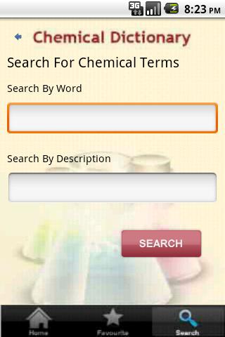 "พจนานุกรมเคมี app" ประกอบด้วยกลุ่มของคำที่เกี่ยวข้องกับเคมีที่ระบุไว้ตามลำดับตัวอักษรที่มีความหมายนั้น app นี้จะเป็นประโยชน์สำหรับนักเรียนส่วนใหญ่ app นี้มาพร้อมกับคุณสมบัติดังต่อไปนี้