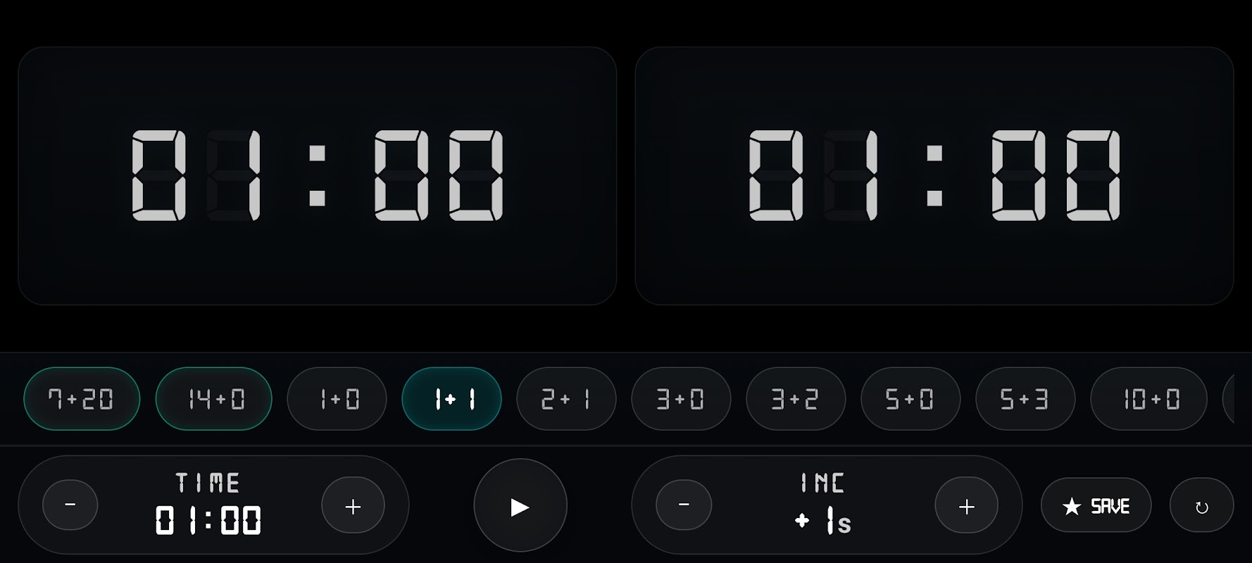 - ตั้งค่าล่วงหน้าได้อย่างรวดเร็วสำหรับรูปแบบยอดนิยม (เช่น 5+3, 10+5, 30+20)