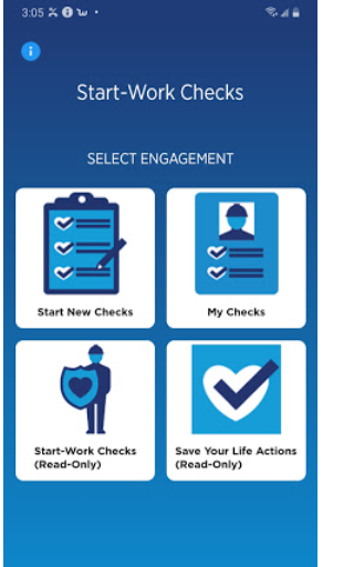 แอป Chevron Start Work Checks เป็นเครื่องมือตรวจสอบมือถือที่ออกแบบมาเพื่อช่วยให้พนักงานภาคสนามยืนยันว่ามีการป้องกันที่เหมาะสมและ "Save Your Life Actions" จะเสร็จสิ้นทันทีก่อนที่จะเริ่มกิจกรรมการทำงานระดับสูง แอปนี้สนับสนุนความพยายามโดยรวมในการกำจัดการบาดเจ็บสาหัสและป้องกันการเสียชีวิตในสถานที่ทำงาน