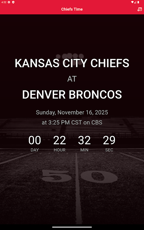 ข้อจำกัดความรับผิดชอบ: แอปพลิเคชันนี้ไม่มีส่วนเกี่ยวข้องใดๆ กับ Kansas City Chiefs หรือ NFL แอปพลิเคชันนี้และผู้พัฒนาจะไม่รับผิดชอบต่อข้อกฎหมายใดๆ ที่อาจเกิดขึ้นจากการใช้งานแอปพลิเคชันนี้