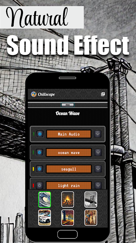 คอลเลกชันเพลงที่ผ่อนคลายพร้อมเสียงธรรมชาติที่ผ่อนคลาย เช่น คลื่นทะเล นกนางนวล ฝนตก และอื่นๆ (ปรับแต่งได้ด้วยคลิปเสียงของตัวเอง)
