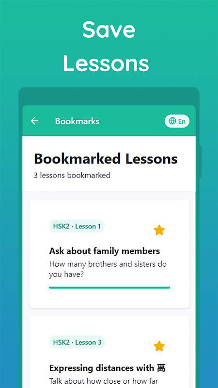 ทุกบทเรียนอธิบายอย่างง่ายดายด้วยตัวอย่างประโยคภาษาจีนและพินอิน เข้าถึงบทเรียนทั้งหมดได้โดยไม่มีโฆษณา ไม่ต้องลงทะเบียน และออฟไลน์