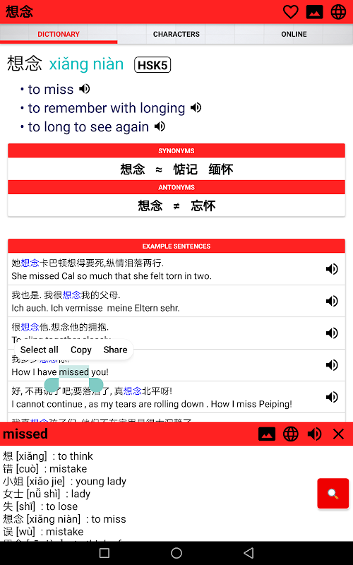 • Radicals and Decomposition: สนับสนุนการค้นหาแบบ Radical และแสดงให้เห็นว่าอักขระแต่ละตัวเขียนโดยองค์ประกอบความหมายหรือการออกเสียง