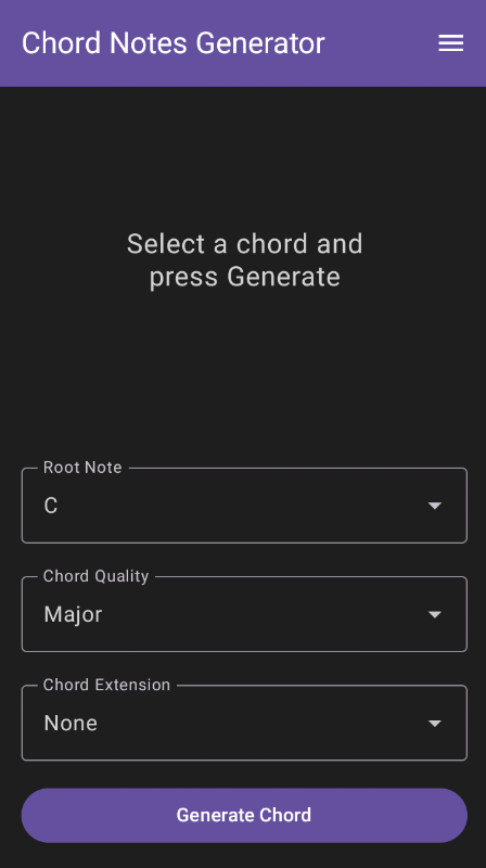 เพียงแค่เลือกโน้ตพื้นฐาน คุณภาพคอร์ด (เช่น เมเจอร์ ไมเนอร์ ซัส4 ซัส2 โดมิแนนต์ 7 เป็นต้น) และส่วนขยายที่ต้องการ (เช่น add9) จากนั้นเครื่องสร้างโน้ตคอร์ดจะแสดงโน้ตที่ประกอบขึ้นทันที