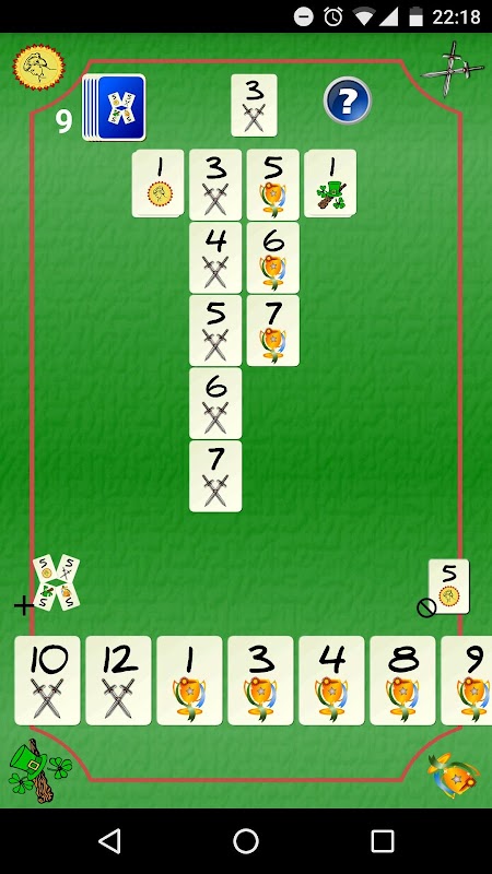 Sólo se puede poner en la mesa un 5 de cualquier palo o una carta cuya carta inmediatamente anterior o posterior del mismo palo ya está puesta en la mesa.