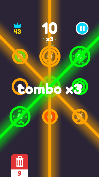 Arrange the circles of the same colour in a diagonally or horizontally straight line to destroy it. Game ends when there’s no space left to place any circle. What high score can you achieve? 🎮 🎉