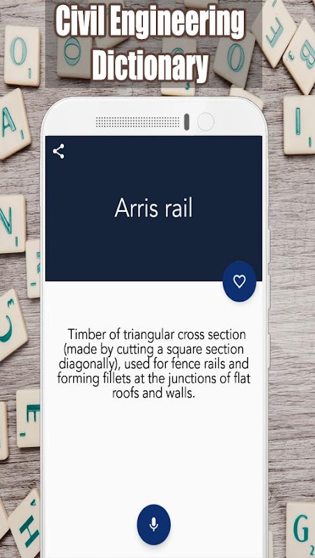 พจนานุกรมคำศัพท์ทางวิศวกรรมโยธา แนวคิดพื้นฐานของคำศัพท์วิศวกรรมโยธาที่ช่วยให้ผู้คนเรียนรู้คำศัพท์ใหม่และหลักการวิศวกรรมโยธาอย่างรวดเร็ว ซึ่งช่วยให้พวกเขาจำข้อมูลได้เป็นเวลานาน เมื่อคุณติดตั้ง พจนานุกรมคำศัพท์ทางวิศวกรรมโยธา ให้ป้อนคำในช่องค้นหาที่คุณต้องการและรับคำอธิบายโดยละเอียดพร้อมการใช้งาน