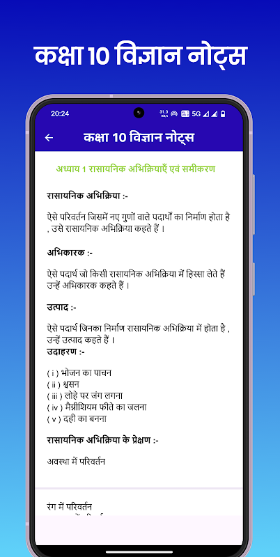 ข้อมูล Class 10 Science Notes Hindi APK
