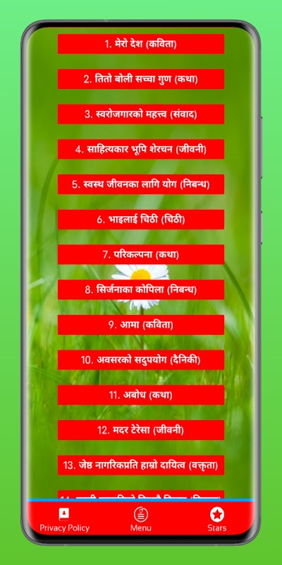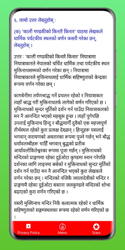 แอพนี้จะช่วยให้นักเรียนเตรียมตัวสำหรับการสอบเนปาล เนื้อหาที่รวมอยู่ในแอพนี้มีวัตถุประสงค์เพื่อการศึกษาเท่านั้น ฉันขอบคุณมากสำหรับผู้เขียนเนื้อหาของคู่มือนี้ที่ช่วยฉันทำคู่มือนี้ให้สมบูรณ์และทำให้มีประโยชน์มากขึ้นสำหรับนักเรียนที่ยินดีรับเกรดเฉลี่ยที่ดีในการศึกษาเนปาล ขอบคุณที่ใช้แอปของเรา