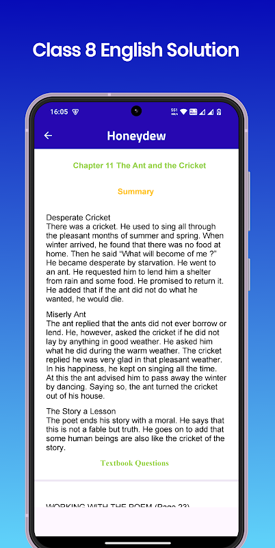 แอพนี้ประกอบด้วยคำถามคำตอบของทุกบทที่รวมอยู่ใน CBSE Class 8 NCERT English