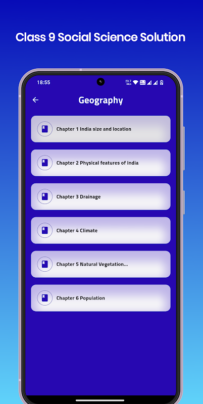 แอปพลิเคชั่นนี้มีบทบันทึกย่อทางสังคมศาสตร์ NCERT ระดับ 9 ที่ชาญฉลาดพร้อมคำอธิบายสั้น ๆ ที่ชาญฉลาด แอปพลิเคชั่นนี้ออกแบบมาสำหรับนักเรียนชั้น 9 แต่ละบทมีบันทึกรายละเอียดพร้อมบทที่ชาญฉลาด แอปพลิเคชั่นนี้มีเนื้อหาสี่ส่วน ได้แก่ ประวัติศาสตร์ รัฐศาสตร์ ภูมิศาสตร์ และเศรษฐศาสตร์ ฉันคิดว่าแอปพลิเคชันนี้ต้องมีแอปพลิเคชันสำหรับนักเรียนชั้น 9