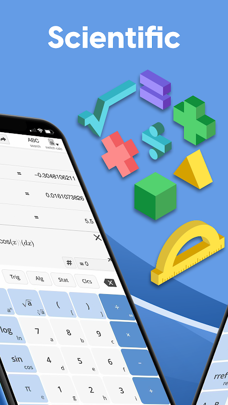 คุณสมบัติ: Cos, Pi, ค่าเฉลี่ย, Ln, สถิติพื้นฐาน, โหมด, เปอร์เซ็นต์, ราก, Sin, Tan, Gcd, อินทิกรัลไม่แน่นอน, โมดูลัส, Sin-inverse, แปลงทศนิยมเป็นเศษส่วน, แทนเจนต์, Trig Inverse, เลขยกกำลัง, ตารางคะแนน Z, ตัวค้นหาคะแนน Z
