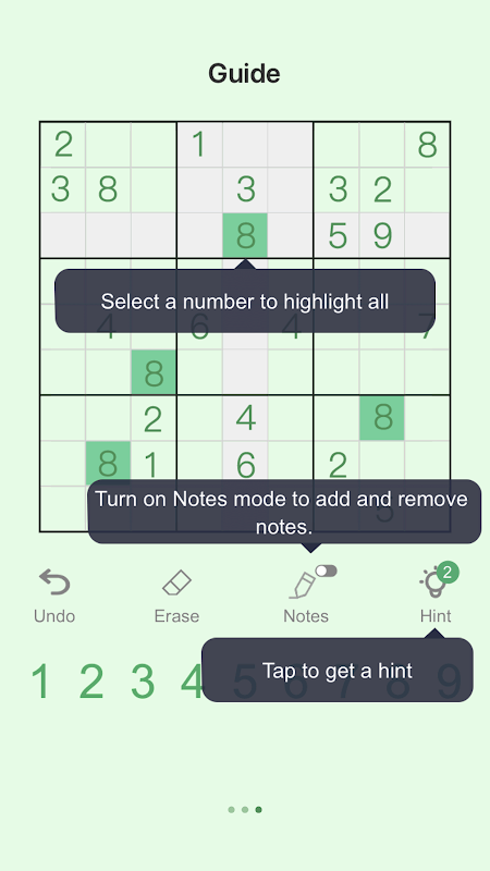 การตั้งค่าเกม Sudoku มากมายสามารถปรับให้เข้ากับสไตล์เกมของคุณได้ (ซ่อนตัวเลขที่ใช้ เน้นตัวเลขที่ไม่ซ้ำกัน เน้นตัวเลขเดียวกัน เน้นพื้นที่ หรือโยนข้อผิดพลาด การกู้คืนอัตโนมัติ)