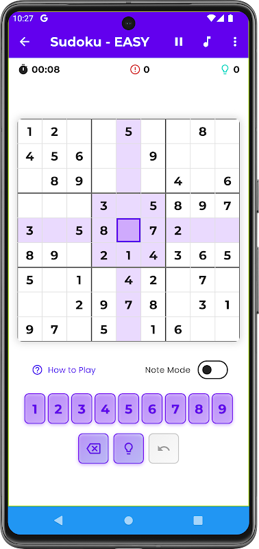 เกมซูโดกุนี้เหมาะอย่างยิ่งสำหรับการพักผ่อนระยะสั้นหรือการฝึกสมองที่ยาวนาน ออกแบบมาเพื่อให้คุณเฉียบคมและสนุกสนาน