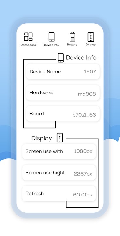 Cleaner Device Info ToolBox เป็นแอปพลิเคชั่น Android ที่ใช้งานง่ายและทรงพลังที่ให้ข้อมูลที่สมบูรณ์เกี่ยวกับอุปกรณ์มือถือของคุณด้วยส่วนต่อประสานผู้ใช้และวิดเจ็ตขั้นสูง ตัวอย่างเช่น ข้อมูลอุปกรณ์/ข้อมูลโทรศัพท์ประกอบด้วยข้อมูลเกี่ยวกับ CPU, RAM, OS, เซ็นเซอร์, ที่เก็บข้อมูล, แบตเตอรี่, SIM, บลูทูธ, เครือข่าย, แอปที่ติดตั้ง, แอประบบ, จอแสดงผล, กล้อง, ความร้อน ฯลฯ นอกจากนี้ ข้อมูลอุปกรณ์/ข้อมูลโทรศัพท์ สามารถเปรียบเทียบอุปกรณ์ของคุณด้วยการทดสอบฮาร์ดแวร์