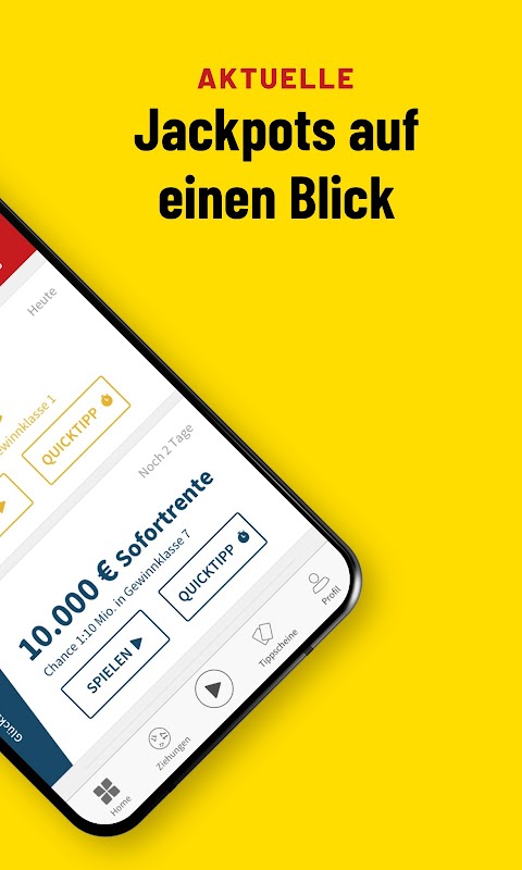 ให้การแจ้งเตือนแบบพุชเตือนคุณทันทีที่แจ็กพอต LOTTO 6aus49, Eurojackpot, Glücksspirale หรือ KENO ถึงระดับที่คุณต้องการหรือสลากลอตเตอรี่ของคุณหมดอายุ รับการแจ้งเตือนเกี่ยวกับช่วงเวลาสำคัญในโลก LOTTO และ Eurojackpot เฉพาะในกรณีที่คุณต้องการ