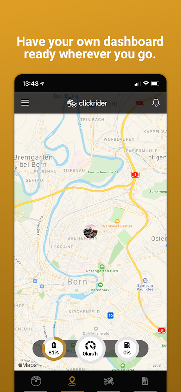 - Fully customize your clickrider app to your motorcycle thanks to simple calibrations, making it as individual as you are.