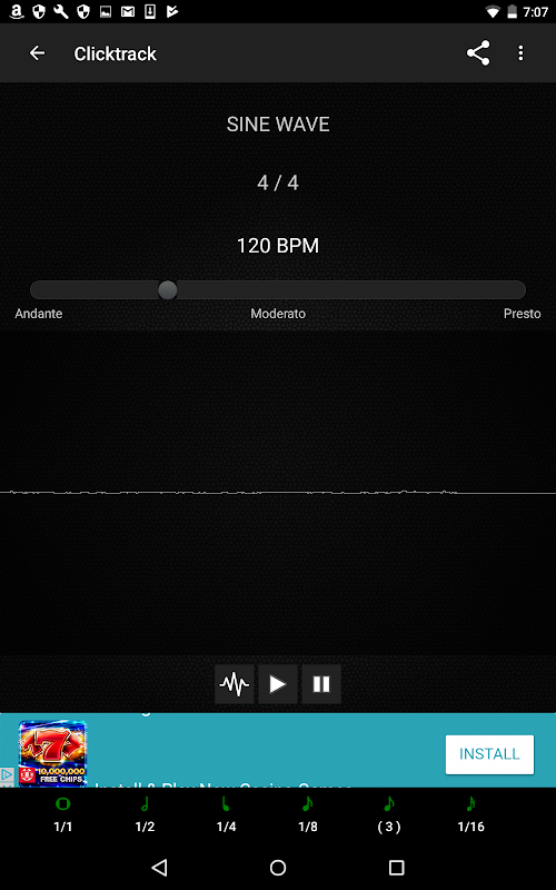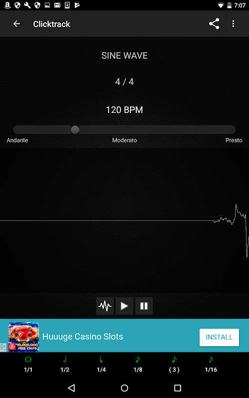 การสั่นเป็นวิธีที่ยอดเยี่ยมในการใช้เครื่องเมตรอนอม วางโทรศัพท์ของคุณบนกลอง โต๊ะ หรือแม้กระทั่งกับกีตาร์ของคุณเพื่อฟังการสั่นในขณะที่คุณเล่น ลดระดับเสียงให้เหลือน้อยที่สุดเพื่อใช้การสั่นแบบสแตนด์อโลนสำหรับแทร็กการคลิกของคุณ