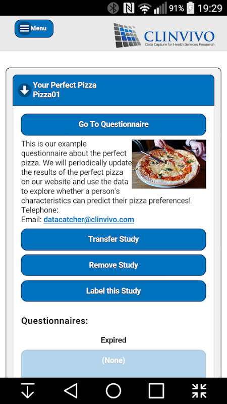 หากคุณกำลังตั้งขึ้นการสำรวจโดยใช้ Clinvivo นี้จะทำผ่านทางเว็บไซต์ Clinvivo แต่คุณอาจโดยตรงผู้ตอบแบบสอบถามที่นี่เพื่อดาวน์โหลดแอปพลิจับข้อมูลที่พวกเขาควรต้องการที่จะตอบสนองต่อการใช้โทรศัพท์ Android หรือแท็บเล็